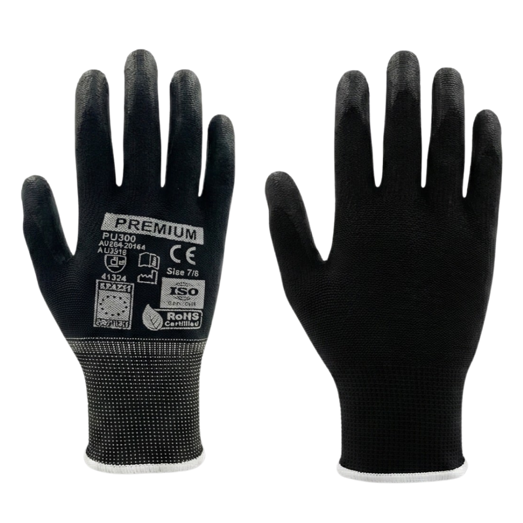 | PU Black | Polyester + PU ดำ | พรางคราบสกปรก / ดูแลรักษาง่าย | ซ่อมเครื่องยนต์ / งานซ่อมบำรุง |